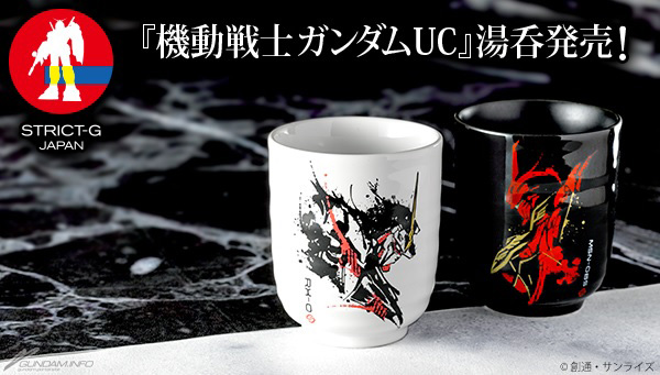 แบรนด์เครื่องแต่งกายที่ใช้แรงบันดาลใจจากอิมเมจของ Gundam มาสร้างเป็นผลิตภัณฑ์ในชื่อ STRICT-G กำลังวางจำหน่ายถ้วยชาสองแบบในซีรีส์ "Mobile Suit Gundam UC" วางจำหน่ายเสาร์ที่ 8 มิถุนายน 2019