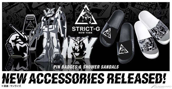 ณ แบรนด์เครื่องแต่งกายที่ใช้อิมเมจของ กันดั้ม มาเป็นแรงบันดาลใจในการสร้างสรรค์ผลิตภัณฑ์ "STRICT-G" ออกเข็มกลัดจาก "STRICT-G NEW YARK" 4 แบบ ตั้งแต่วันเสาร์ที่ 20 กรกฎาคม 2019 ส่วนรองเท้าแตะ 2 แบบจะวางจำหน่ายในวันเสาร์ที่ 3 สิงหาคม 2019
