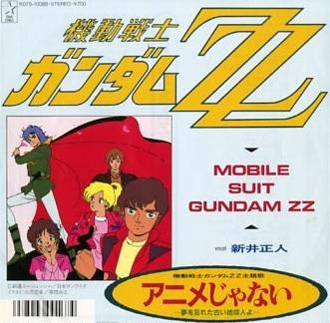ถัดมาก็เป็นยุคของปี 1986 ซึ่งเป็นปีของ Mobile Suit Gundam ZZ เพลงเปิด Anime ja Nai - Yume o Wasureta Furui Chikyujin yo. โดยเพลงนี้ ถือเป็นเพลงที่เป็นเอกลักษณ์ของกันดั้มที่สุดแต่งโดยโปรดิวเซอร์ชื่อดัง ยาสึชิ อากิโมโตะ ที่ตอนนั้นอายุแค่ 27 ปีเท่านั้น