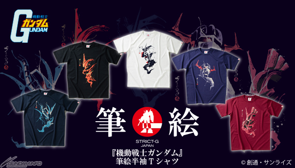 เสื้อยืดแขนสั้น Mobile Suit Gundam เพ้นพู่กัน 5 แบบของ STRICT-G JAPAN ร้านขายเครื่องแต่งกายที่ผสมผสานโลกของกันดั้มเข้าไว้ด้วยกัน จะวางจำหน่ายในวันเสาร์ที่ 8 เมษายน ในราคา 5,830 เยน (รวมภาษี)