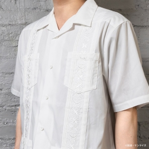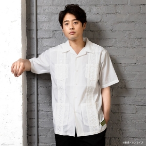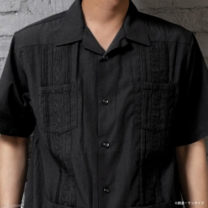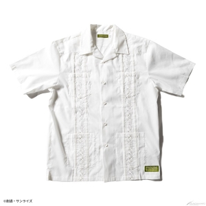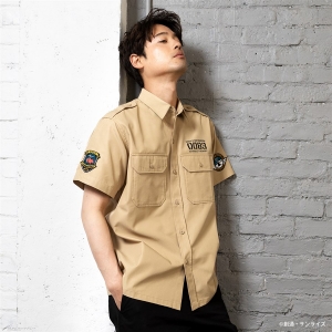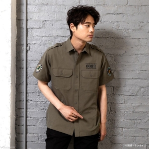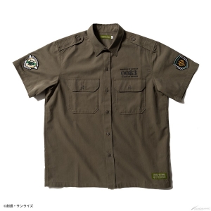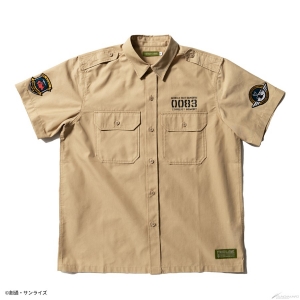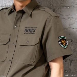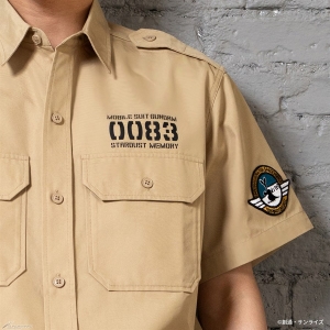 เสื้อเชิ้ตทหารแขนสั้นทนทานตัดเย็บจากผ้าคอตตอนไนลอน โดดเด่นด้วยกระเป๋าแบบมีฝาปิดที่หน้าอกทั้งสองข้างและอินทรธนูที่ไหล่ คำว่า 'MOBILE SUIT GUNDAM 0083 STARDUST MEMORY' ถูกพิมพ์ไว้เหนือกระเป๋าหน้าอกด้านซ้าย