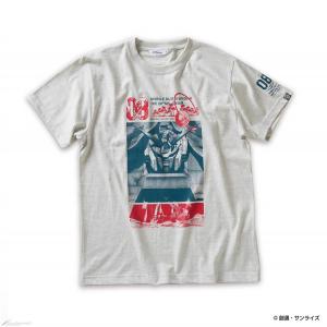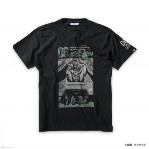 ทีเชิร์ตลายกราฟิก มีกระเป๋าและพิมพ์ลายแพทเทิร์น Shuddering Mountain พร้อมประโยคทองของตัวละคร Shiro Amada คำว่า "Never Die" และมีลาย Gundam Ez8 ด้านหลัง