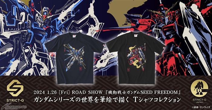 เสื้อยืด STRICT-G JAPAN Mobile Suit Gundam SEED FREEDOM Brushstroke ที่มี 2 ดีไซน์ จะวางจำหน่ายในวันพรุ่งนี้จาก STRICT-G ร้านจำหน่ายเครื่องแต่งกายที่รวมเอาจักรวาลของกันดั้มไว้ด้วยกัน โดยจำหน่ายในราคาตัวละ 5,830 เยน (รวมภาษี)