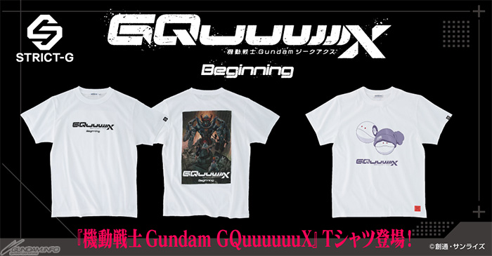 พรีออเดอร์เสื้อยืด STRICT-G Mobile Suit Gundam GQuuuuuUX สองแบบจะเริ่มในเวลา 13:00 น. (JST) วันศุกร์ที่ 24 มกราคม 2025 ผ่านร้านค้าออนไลน์ STRICT-G บน Premium Bandai ราคาตัวละ 4,730 เยน (รวมภาษี)