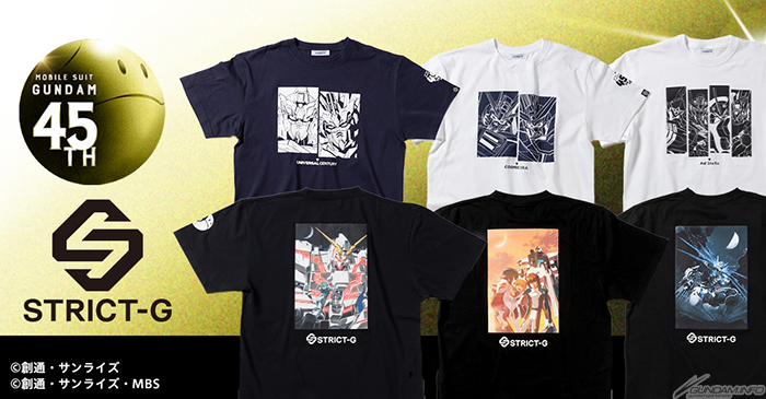 พรีออเดอร์เสื้อยืด STRICT-G Gundam Series 45th Anniversary ทั้ง 6 แบบจะเริ่มตั้งแต่วันนี้ วันพุธที่ 12 มีนาคม เวลา 13.00 น. JST บนเว็บไซต์ STRICT-G Online Store ของ Premium Bandai โดยเสื้อยืดแต่ละตัวจะวางจำหน่ายในราคา 4,730 เยน