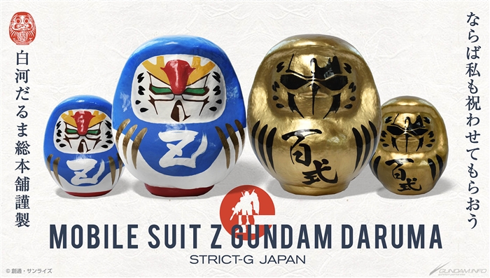 ตุ๊กตา daruma Z Gundam และ Hyaku-Shiki จะออกวางจำหน่ายในรูปแบบของตุ๊กตาขนาด 15 ซม. และขนาด 8.5 ซม. ที่เล็กกว่า ตุ๊กตา Daruma แต่ละตัวนั้นถูกสร้างด้วยมือเป็นอย่างดีจากช่างฝีมือในท้องถิ่น