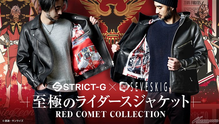 Char models of Mobile Suit Gundam rider jackets ทั้ง 2แบบมาจากความร่วมมือระหว่างแบรนด์แฟชั่นอย่าง SEVESKIG และ STRICT-G ร้านเสื้อผ้าที่ผสมผสานด้วยโลกของกันดั้มจะเริ่มวางจำหน่ายวันศุกร์ที่ 12 มีนาคมนี้