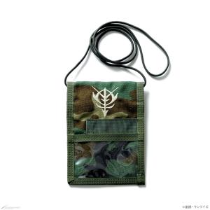 เคสใส่พาสปอร์ตทำจากไนลอน CORDURA® มีแผ่นพร้อมตะขอและสายรัด, กระเป๋าใสสามารถใส่พาสปอร์ตหรือบัตรประชาชน และกระเป๋าเปิด สำหรับใส่บัตรเครดิต หรือเงินสด และกระเป๋าใสและที่ใส่ปากกาด้านหลัง สามารถใช้เคสพาสปอร์ตเป็นกระเป๋าเงินหรือบัตรโดยสาร การผสมผสานของลายพรางและผ้าธรรมดาเข้ากับโลโก้ Zeon นำโลกของกันดั้มออกมาด้วยดีไซน์ที่เข้ากับสถานการณ์และทุกชุดการแต่งกาย