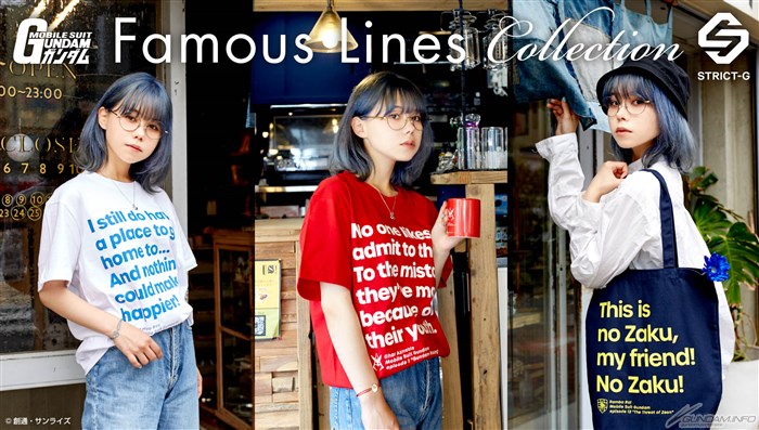STRICT-G แบรนด์จำหน่ายเครื่องแต่งกายมีสินค้าที่ได้แรงบันดาลใจจากโลกของกันดั้ม จะวางจำหน่าย Famous Lines คอลเล็กชั่นชื่อดัง โดยเริ่มจำหน่ายวันเสาร์ ที่ 5 มิถุนายน คอลเล็กชั่นนี้ เป็นสินค้าที่ออกแบบอย่างเรียบง่ายแต่ทันสมัย โดยเน้นไลน์สินค้าที่มีชื่อเสียงจากโมบิลสูทกันดั้ม