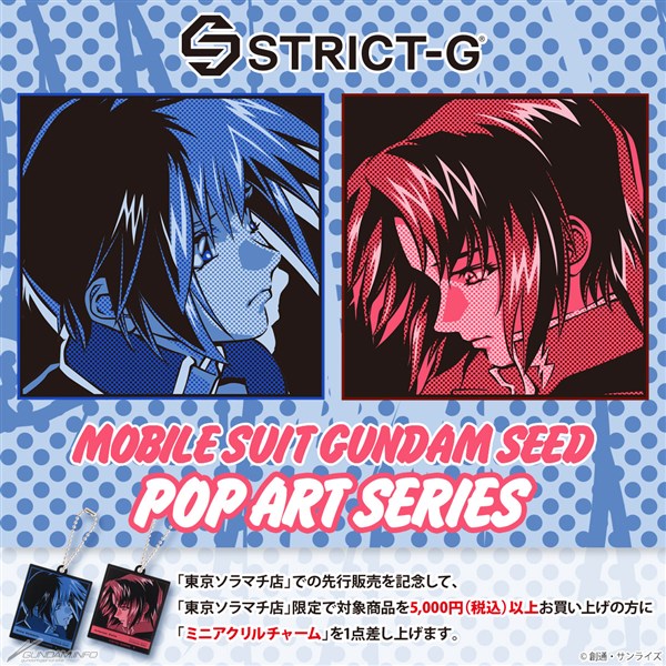 STRICT-G Tokyo Solamachi Store, an apparel shop inspired by the world of Gundam, will release the latest products from the Mobile Suit Gundam SEED POP ART Series as a pre-release starting Saturday, July 10th.