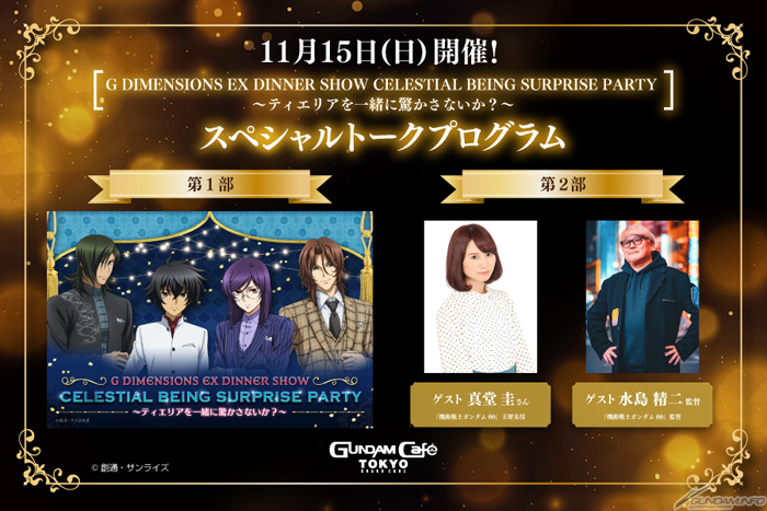 ข้อมูลในรายการสนทนาพิเศษจะเริ่มขึ้นในเวลา 7:00 PM ในวันอาทิตย์ที่ 15 พฤษจิกายนที่ GUNDAM Café TOKYO BRAND CORE (GUNDAM Café TOKYO) ภัตตาคารที่เน้นประสบการณ์แบบเอนเตอร์เทน ได้รับการเปิดเผยแล้ว