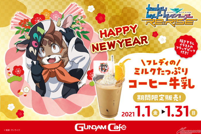 เครื่องดื่มพิเศษ Freddie’s Milky Coffee Milk ได้แรงบันดาลใจมาจาก เฟรดดี้ จากซีรีส์ Gundam Build Divers Re:RISE ซึ่งนำเสนอการสร้างสรรค์ภาพปีวัวทอง