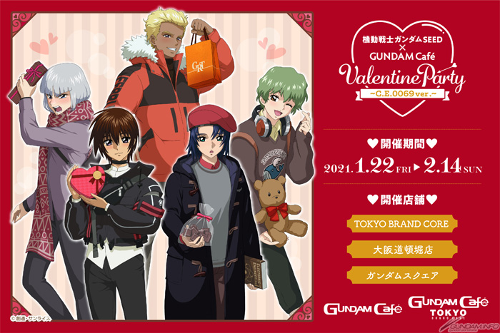 กันดั้มคาเฟ่และกันดั้ม สแควร์ทุกสาขาในโอซาก้ายังจัดงาน PICK-UP-G Gundam SEED Valentine’s & White Day Fair ~C.E.0069Ver.~ ภายในงานมีสินค้าพิเศษจัดจำหน่ายมากมาย ห้ามพลาดโดยเด็ดขาด