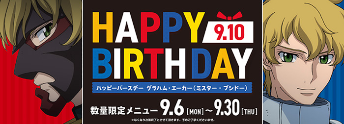 เริ่มวันจันทร์ที่ 6 กันยายน สุขสันต์วันเกิด~Graham Aker~ (~Mr. Bushido~) จัดงานที่กันดั้มคาเฟ่