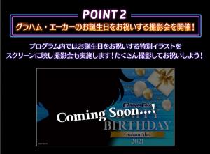 *สุขสันต์วันเกิด~Graham Aker~ และสุจสันต์วันเกิด~Mr. Bushido~ จะมีเฉพาะที่กันดั้มคาเฟ่ TOKYO