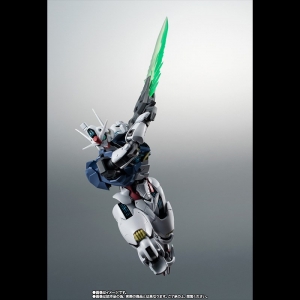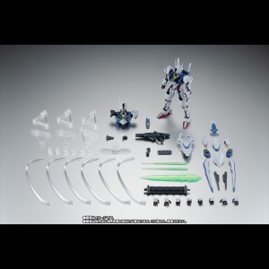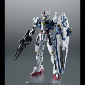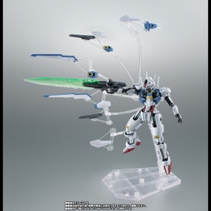 Gundam Aerial จาก Mobile Suit Gundam THE WITCH FROM MERCURY มาร่วมใน ROBOT SPIRITS ver. A.N.I.M.E. ซีรีส์เป็นรูปที่แสดงถึงสถานะที่ปล่อยแสงสีฟ้าจากหน่วยกระสุน