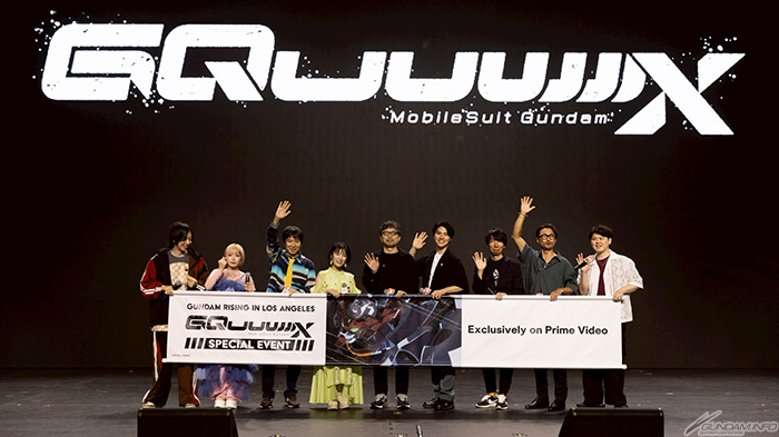 กิจกรรมสนทนา Gundam Rising in Los Angeles!! - Mobile Suit Gundam GQuuuuuuX Special Event ได้จัดขึ้นในวันพฤหัสบดีที่ 3 กรกฎาคม ผู้อำนวยการ Kazuya Tsurumaki ผู้แต่งเพลงประกอบ/เขียนบท Yoji Enokido, Tomoyo Kurosawa ในฐานะ Machu, Simba Tsuchiya ในฐานะ Shuji, Shinji Kawada ในฐานะ Challia Bull, Yuki Shin ในฐานะ Char, และ Naohiro Ogata จาก Bandai Namco Filmworks ขึ้นเวทีเพื่อเสวนา Mobile Suit Gundam GQuuuuuuX.