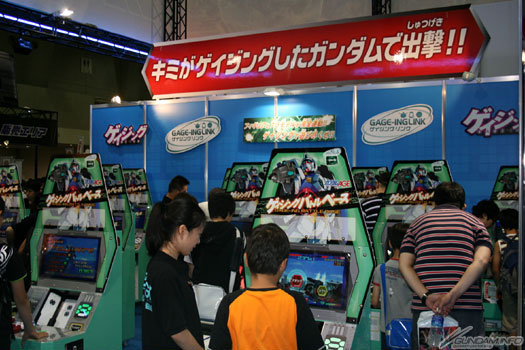 A long line formed for the Gage-ing Battle display, offering demos of the Gage-ing game which scans in Gage-ing Builder figures and Advanced Grade models for play. Players tried their hardest to receive the stickers awarded to winners and the Mega Size Model RX-78 Gundam given to the player with the shortest clear time.