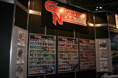 4月19日(木)にいよいよオープンする「ガンダムフロント東京」や、「ガンダムウォーネグザ」の発売全カードとイラストレーターの直筆イラスト色紙が展示されている。
