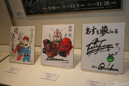 「アニメ・チャリティオークション」ブースでは、オークションに出品されている富野監督、大河原氏、安彦氏の直筆サイン色紙の現物を見ることができる。