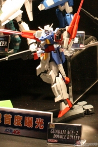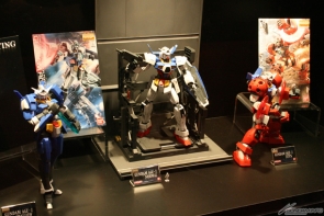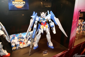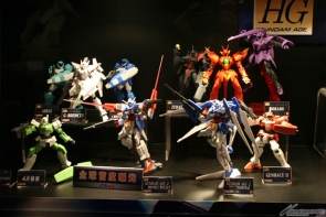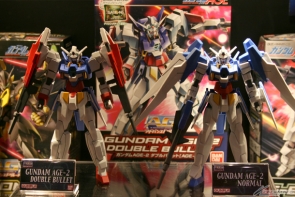 ガンダムAGEのコーナーでは「HG」、「AG」、「MG」、「メガサイズ」の最新アイテムを展示。「ガンダムAGE」は香港でもTV放送中とあって、多くの人が足を止めていた。