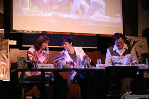 次に来場者や視聴者からの質問に回答するコーナーで「ミリアリアの魅力」を問われた豊口さんは「普通のキャラクター」であることを挙げ、監督は、ミリアリアの「発進、どうぞ!」の言い方がすごくよかったと絶賛。さらにミリアリアをキャラクターデザインの平井さんに発注する際に「あんまりかわいいとキラが惚れちゃうから、かわいくしないで」とお願いしたことを暴露。これは豊口さんも知らなかったらしくと驚きを隠せない様子だった。