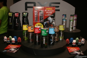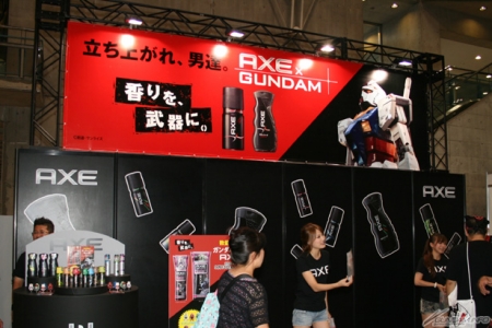 Axe's booth handed out body soap samples and announced a new Gundam promo beginning in September.