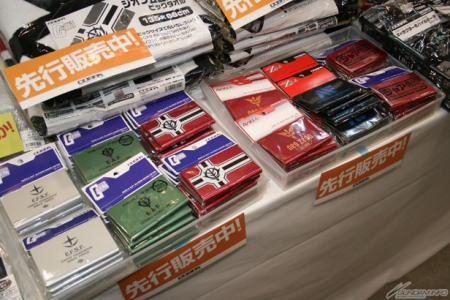 The Cospa booth sold Gundam business card holders and towels in advance of normal release.
