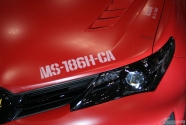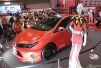 | From its militaristic matte red to its Zeon emblems, the roof-mounted blade antenna, and vernier-styled diffuser and built-in muffler, it looked every inch the Char Custom. The waves of cameramen angling for a picture of the Char Custom Auris continued through the end of the show on the 26th. |