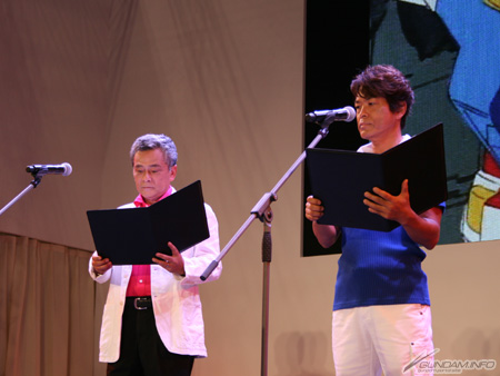 収録のもようや「シャア専用オーリス CONCEPT」でトークが盛り上がる中、今回は特別に池田さんと古谷さんによる生アフレコもステージで披露された。イベントでの生アフレコは初めてというお二人。披露されたのは「劇場版 機動戦士ガンダムIII めぐりあい宇宙編」のクライマックス、シャアとアムロが激戦を繰り広げ、生身で対峙するところ。名シーンの再現に、会場から大きな拍手が起こっていた。