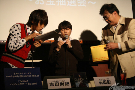 イベントは、急遽駆け付けたニッポン放送アナウンサー、吉田尚記氏を司会に、アスラン・ザラ役の石田 彰氏と福田己津央監督をゲストに迎え、生アテレココーナーや機動戦士ガンダムSEED 名ゼリフランキングの結果発表などが行われ、大盛り上がりとなった。