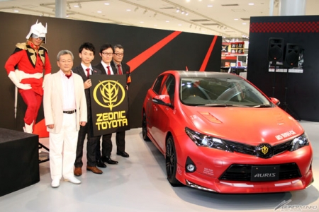 Zeonic Toyota: A collaboration between the Toyota Motor Corporation and Zeonic. Its establishment was announced January 9th at a press conference held at MEGAWEB in Odaiba, featuring Char Aznable's voice actor Shuichi Ikeda and Numacchi, an actor famous for his Char impersonation.