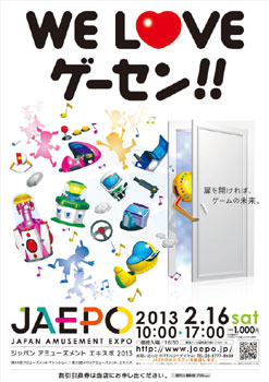 Japan Amusement Expo 2013, a combination of the Amusement Machine Show and AOE Expo, will be held February 15th and 16th at Makuhari Messe.