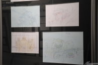 ▲『ガンダムUC』のレイアウト原画やコンテなど、ファン垂涎の資料が所狭しと展示されている!