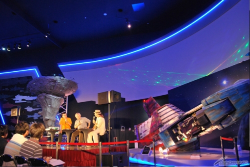 トークが行なわれたのはガンダムフロント東京内のエクスペリエンス・ゾーン。コア・ファイターやア・バオア・クーの巨大模型を背に、安彦さんと板野さんが当時の思い出を語っていった。