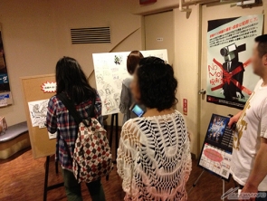 ▲筱 雅律さん、小野早香さんによる美麗イラスト色紙の前には多くのファンが集まっていた。