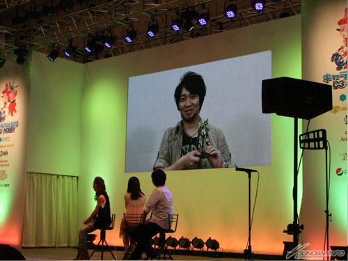 ガンプラサイドから作品を紹介するコーナーでは、おなじみバンダイ ホビー事業部の川口名人が登場。作品でキャラクターたちが作るガンプラが実際に商品化され、そのラインナップを紹介。当日のバンダイ・ブースでも数々の試作品が展示されていた。最後にファンへ向けて國立さんからメッセージが送られた。