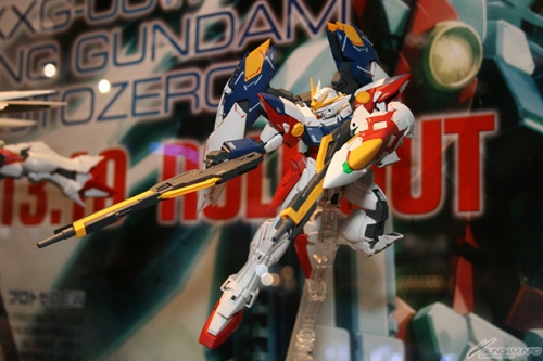 ▲「ガンダムビルドファイターズ」のHGシリーズガンプラは、TV放送開始にあわせて10月より続々と発売される。巨大なパッケージや趣向を凝らした展示、さらに「HG ウイングガンダムフェニーチェ」の試作品が初公開されるなど盛りだくさんとなった。