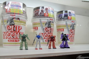 ▲さらに、miniガンプラや特製カップが付属した歴代のコラボ商品も展示されていたぞ!