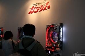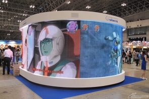 ▲SANKYOブースでは、半円形の巨大スクリーンで「フィーバー機動戦士ガンダム」のリーチ映像を上映!中には実機も展示されていたぞ!