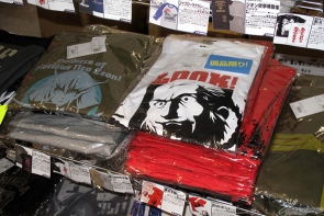 ▲コスパのブースでは、Tシャツやストラップなどを販売!コスプレやパーティーで使える連邦軍制服も!
