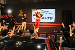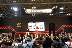 ▲ブース内に設置されたステージでは、シャアのものまねでおなじみの芸人・ぬまっちが登場!「HGUC シャア専用ザク Ver.ZEONICTOYOTA」がプレゼントされる「シャアんけん大会」では、ぬまっちと来場者の白熱した勝負が繰り広げられた!