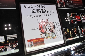 ▲「ザク之介」や「アイリン・フルカワ」など、ジオニックトヨタ広報部の活動をたどる展示も!