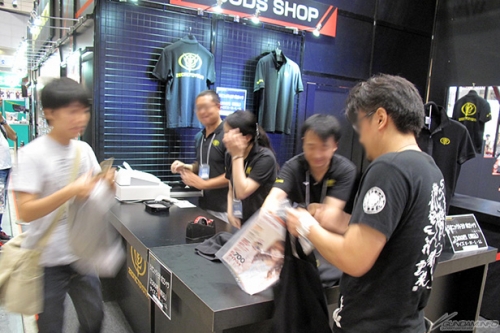 ▲ブースでは、イベント限定アイテム「ジオニックトヨタオリジナルポロシャツ」も販売!
