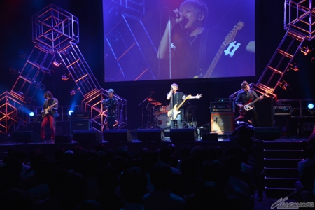 第1話の上映の後は、ロックバンド「BACK-ON」が登場。興奮も冷めやらぬ中、本作のオープニングテーマである「ニブンノイチ」を迫力の生演奏とともに披露した。