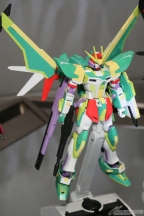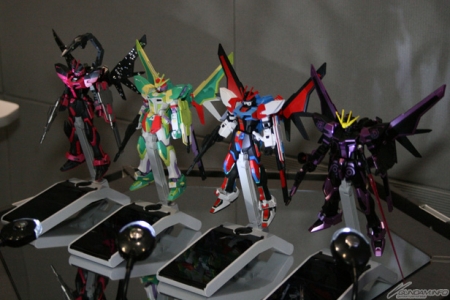 ▲『ガンダムビルドファイターズ』の最新ガンプラが勢ぞろい。立体展示は初となる「ウイングガンダムフェニーチェ」が搭乗する「メテオホッパー」も展示されていた。