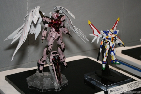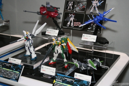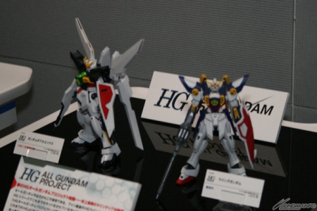 ▲『ガンダムビルドファイターズ』と連動した「HGオールガンダムプロジェクト」のアイテムとして、好評発売中の「HGAC ウイングガンダム」と、今月11日発売予定の「HGAW ガンダムダブルエックス」の展示も行われていた。