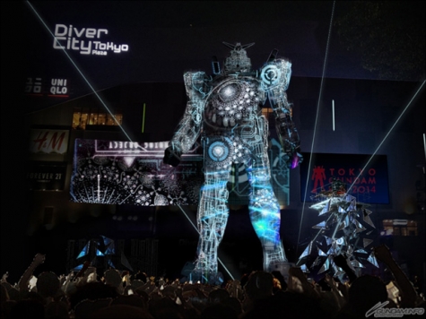 東京・お台場「ダイバーシティ東京 プラザ」のフェスティバル広場に立つ実物大ガンダム立像では、本日3月20日(木)に「TOKYOガンダムプロジェクト2014 ガンダムプロジェクションマッピング“Industrial Revolution”‐to the future‐」が開催された。