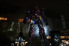 発表会の後は、お台場の「ダイバーシティ東京 プラザ」フェスティバル広場にて、実物大ガンダム立像による新たな演出「TOKYOガンダムプロジェクト2014 ガンダムプロジェクションマッピング “Industrial Revolution” -to the future-」がお披露目された。