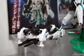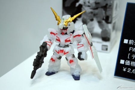 ▲4月4日発売予定の「機動戦士ガンダムUC episode 7 特典付き前売り券第2弾」に付属する「FW GUNDAM CONVERGE ユニコーンガンダム[デストロイモード]劇場限定パールクリアVer.」の実物を見ることもできたぞ!